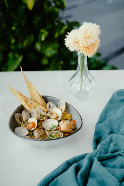 Gensan Shrimps, Garlic Chips, EVOO, Grilled Baguette